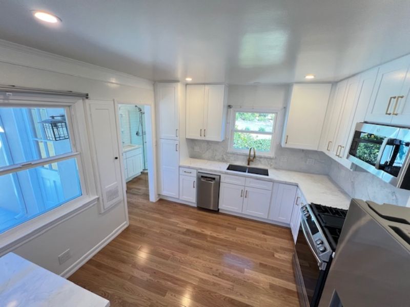 This charming 2 bedroom, 1 bath home with a brand new spacious attached bonus room sits in the sought after Eucalyptus Hill neighborhood and is available now. Entering the charming home, you are greeted with seamless blend of timeless beauty and modern quality. Every room is bathed in natural light, creating warm and inviting ambiance, while expansive windows frame captivating ocean vistas and beautiful warm original wood floors throughout. The living room has a beautiful bay window and a gas fire place to enjoy and capitate your evening sunsets. Just off the living room is the dining room, which have double French doors leading to an entertaining patio and spacious back yard. Step into the newly remodeled and modern kitchen with beautiful finishing touches. There are plenty of modern gray cabinets for all your kitchen needs for storage and white marble granite counter tops with all new stainless steel appliances. The two bedrooms are on the other side of the home off the entry Hall. The front bedroom is spacious with captivating ocean views. The second bedroom down the hall has double French doors that open up the backyard patio. There is a updated hall bathroom with a dual sinks and a shower tub combo. This beautiful updated home has a undeniable charm, this Eucalyptus Hill gem captures the essence of Santa Barbara living. Just two miles from the Funk Zone, fine dining and luxury shopping in Coast Village Road, and the sun soaked sands of the finest beaches, this home puts the best of Santa Barbara at your fingertips. This home is looking for at least a year lease and will consider your pet/animal.