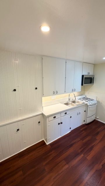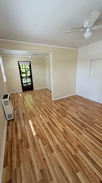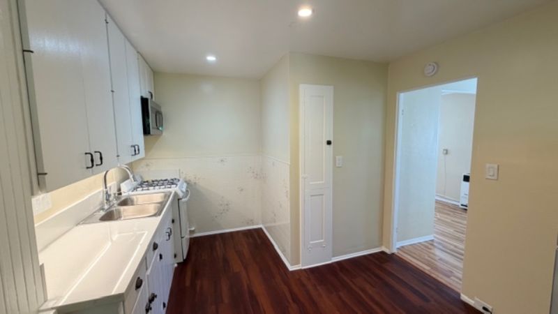 Located downtown in the Historical Landmark District is this updated and charming garden setting 1 bedroom and 1 bath upstairs triplex apartment that is available now. Entering the property through an enclosed shared courtyard. The unit has been freshly painted throughout the interior, making it fresh and bright with the natural lighting from all the windows. There is faux wood throughout the home. The kitchen has been updated with a new countertop, sink and microwave hood. There is plenty of cabinet space in kitchen for pantry and storage. Just off the kitchen is the living room with a French door leading to your patio overlooking the shared garden area. The bedroom is off the living room with bathroom with shower/tub combo. A washer/dryer is on site, coin operated. Included in the monthly rent are water, trash and a gardener. There is on-street permit parking only. The location is just 2 blocks from the Paseo Nuevo shopping center and a short 10 minute walk to the beach. Looking for a one-year lease minimum.