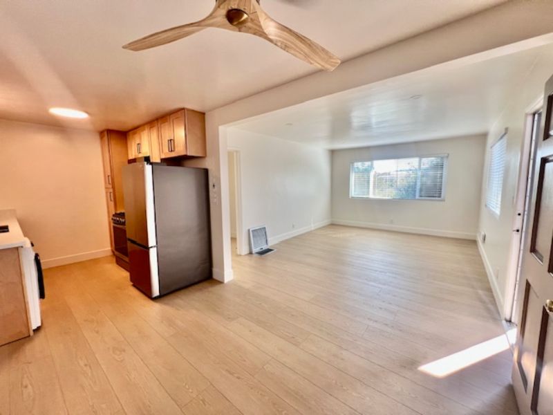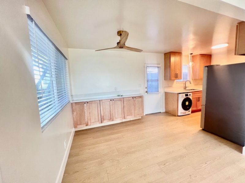 Charming, updated, and exceptionally clean, this one-bedroom, one-bath duplex is located just a few blocks from the iconic Santa Barbara Bowl. From the moment you step inside, you’ll be welcomed by an abundance of natural light streaming through brand-new double-pane windows. The home features new wood-look flooring throughout, creating a warm and inviting space. Off the living room, a cozy dining nook with built-in cabinetry offers extra storage and seamlessly connects to the newly remodeled kitchen. With ample cabinet space, Corian countertops, stainless steel appliances, and a new washer and dryer, the kitchen is both stylish and functional. The bedroom is generously sized and includes a large closet and ceiling fan for comfort. The bathroom offers a combination tub and shower. Step outside to your private patio, the perfect place to unwind—whether you're enjoying a BBQ or listening to live music drifting over from the Bowl.