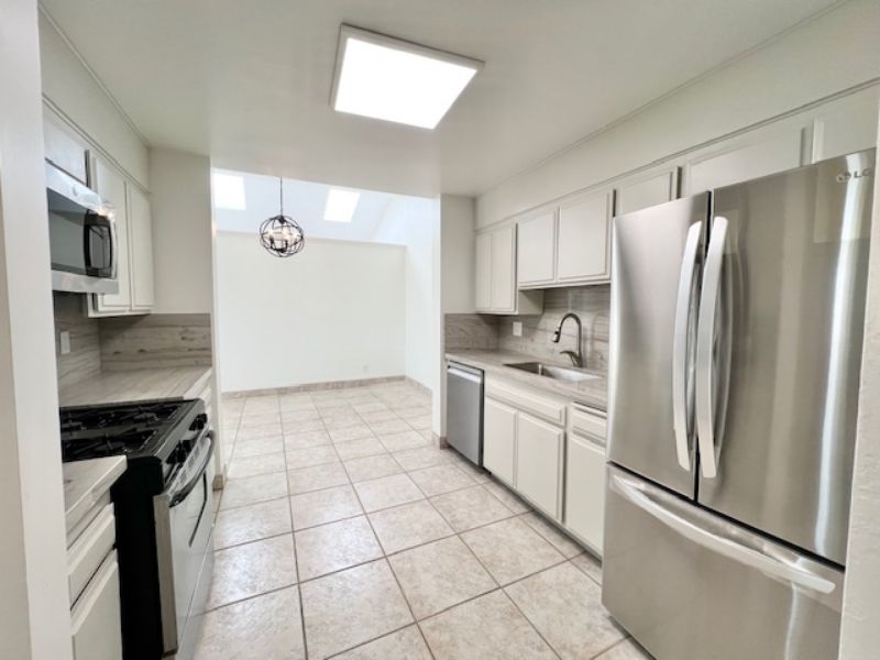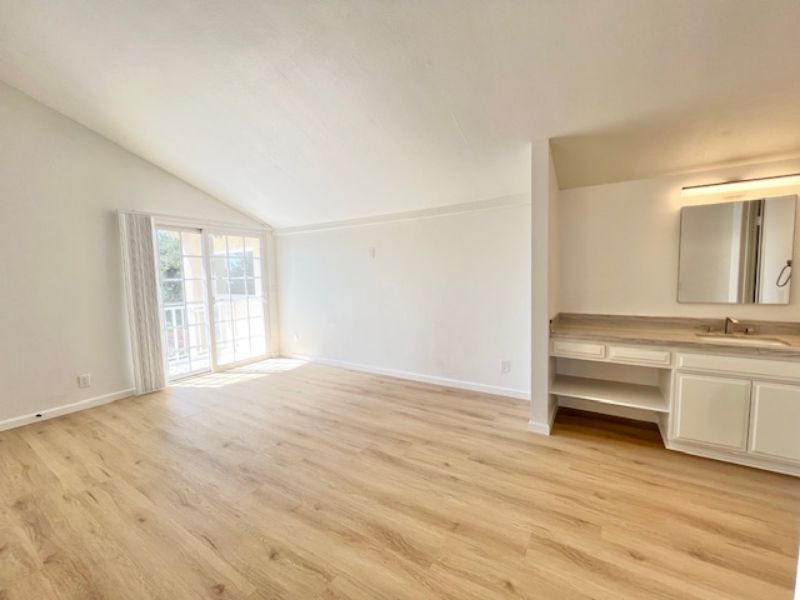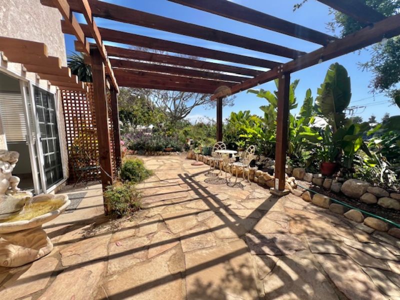 Modern, bright and quiet 3 bedroom/2.5 bath townhouse has been updated and freshly painted. Entering the home one is struck by the high ceiling, the open and airy feeling with all the abundance of natural lighting. The spacious downstairs living area has white tile flooring, gas fireplace in living room, a bay window and ceiling fans. Just off the living room is a bonus room which is perfect for a guest room, office or family room. The dining room is just off the kitchen, which has been updated with all new kitchen counter tops, new refrigerator, microwave and dishwasher. There is a half bath off the kitchen right before entering the two-car attached garage. Upstairs has been updated with all wood like vinyl plank flooring. The primary bedroom has a balcony with peak views of the ocean and has a bath with a shower only. Adjacent to the primary bedroom are the other two bedrooms with mountain views. The is a hall bathroom with a new shower and bath combo. There is a small flag stone patio right off the living room with a fountain and garden setting. The two-car attached garage has shelves and plenty of space for storage and washer and dryer hook ups. This property is a block from Ledbetter beach, easy walk or a bike ride away from the marina, harbor and great restaurants, cafes and so much more. Looking for at least a year lease, will consider your pet and is available now.