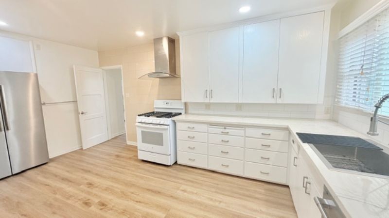 Just one block from one of Santa Barbara's finest beaches, this beautifully updated Spanish adobe offers a bright and airy 3-bedroom, 2-bath layout in an unbeatable location. The home is filled with natural light and features original hardwood floors in the bedrooms and living room, with new wood-style flooring in the kitchen, dining area, and laundry room. The living room boasts high ceilings, a ceiling fan, abundant windows, and a decorative wood-burning fireplace. The dining room sits just off the kitchen and includes a charming built-in corner cabinet. The spacious kitchen has been updated with new stainless steel appliances, quartz countertops, and ample cabinet space. Off the kitchen is a laundry room with additional storage, a washer and dryer, and an updated full bathroom. All bedrooms offer generous space, beautiful cedar closets, and original flooring. The rear bedroom enjoys peaceful mountain views. The hallway provides extensive storage with deep cedar built-in drawers and closets. The second hall bathroom has been updated with new tile flooring, a new bathtub, and a separate shower. Outdoor spaces include a porch off the kitchen and a private back patio featuring orange and avocado trees. Additional amenities include a one-car garage, one off-street parking space, and proximity to the Marina, restaurants, and beaches just steps away.