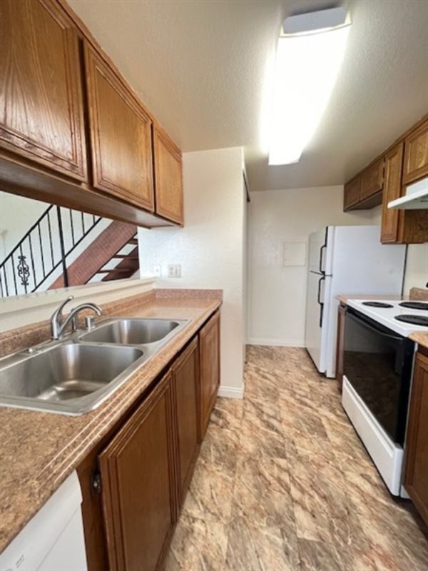 Cute two bedroom, 1 bathroom front, corner unit condo nestled in between the Majestic Mountains, Carpinteria Bluffs and the Pacific Ocean beyond, available middle of June. Entering this corner unit you will notice the abundance of natural lighting that comes in from all the windows downstairs and upstairs. The downstairs is an open floor plan with the living room as you walk in with a decorative brick wall, dining area just off the kitchen and a galley kitchen. Upstairs in the bath with shower/tub combo. Primary room has a spacious walk in closet. This unit has no neighbors across the street just views of an avocado orchard, some ocean views as well. There is a greenbelt and some community amenities such as a playground a pool. There is a shared garage parking for 1 vehicle and off street parking as well. There is a shared laundry room.
