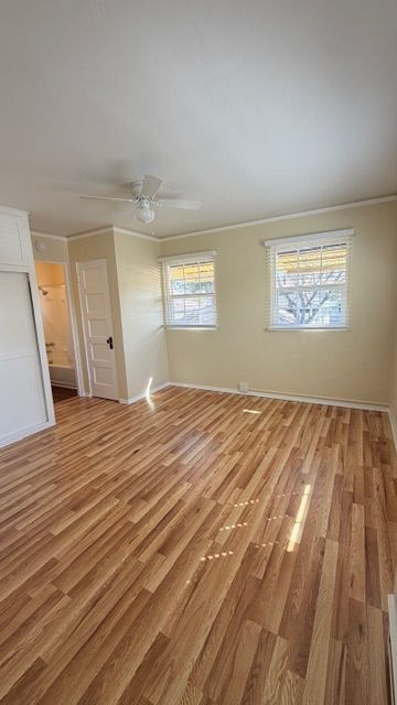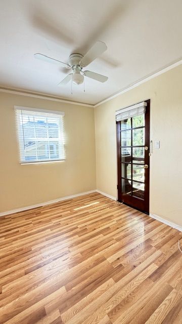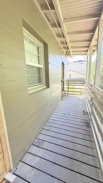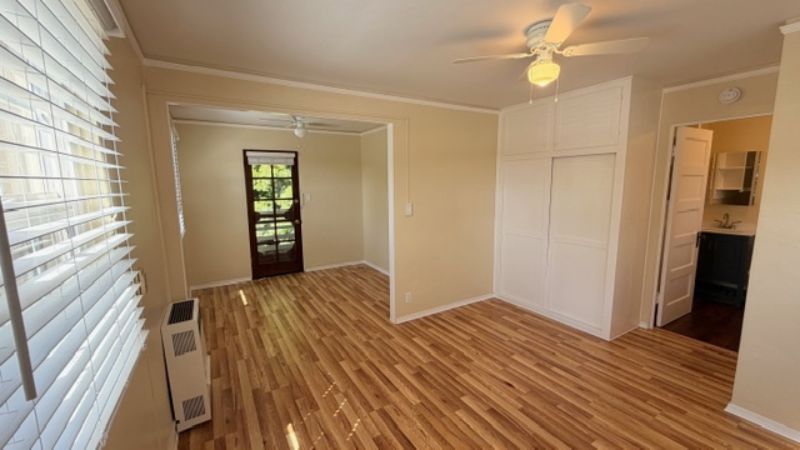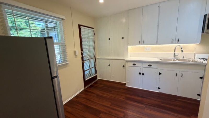 Located downtown in the Historical Landmark District is this updated and charming garden setting 1 bedroom and 1 bath upstairs triplex apartment that is available now. Entering the property through an enclosed shared courtyard. The unit has been freshly painted throughout the interior, making it fresh and bright with the natural lighting from all the windows. There is faux wood throughout the home. The kitchen has been updated with a new countertop, sink and microwave hood. There is plenty of cabinet space in kitchen for pantry and storage. Just off the kitchen is the living room with a French door leading to your patio overlooking the shared garden area. The bedroom is off the living room with bathroom with shower/tub combo. A washer/dryer is on site, coin operated. Included in the monthly rent are water, trash and a gardener. There is on-street permit parking only. The location is just 2 blocks from the Paseo Nuevo shopping center and a short 10 minute walk to the beach. Looking for a one-year lease minimum.