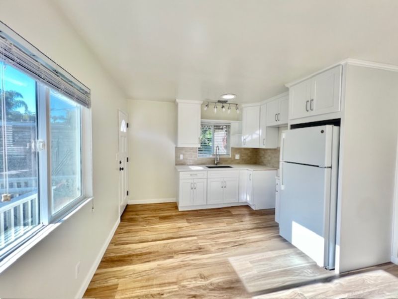 This charming, newly remodeled studio is available now in the highly desirable Mesa neighborhood, just one block from Shoreline Park. The space is bright and airy, filled with natural light from large windows and solar tubing. Inside, you’ll find new wood flooring throughout, a ceiling fan in the main living area, a double closet, and an extra storage closet. The full kitchen features all new appliances and opens through a glass sliding door to a private deck with a small garden—perfect for relaxing outdoors. The brand-new bathroom includes a beautiful tile shower (shower only). Located in a quiet and friendly neighborhood, this property is within walking distance of cafes, shops, and the beach. Street parking is available. All utilities are included except for Wi-Fi and cable. A shared washer and dryer are provided on-site.