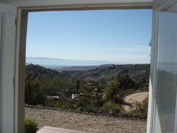 Spectacular 180 degree views of Santa Barbara, the Pacific Ocean and the Channel Islands from this very private and newerguesthouse. Nestled in the foothills of Montecito this little guesthouse is big on amenities! Step onto beautiful tiled floors with the rich look of seasoned wood. The kitchen boasts stainless steel appliances, custom cabinets and black Caesarstone countertops.There are French doors which have glass enclosed designer shades for privacy that open up nicely to let in your views. The home has decorative ceiling fans, dual paned windows and extra thick walls for maximum insulation. There is a nice size bedroom with a spacious closet of built-ins, a full bath, small vanity and designer fixtures. A new stackable washer/dryer is available plus an area outside for plenty of storage and parking for one or two cars off street. From the front porch you get to enjoy the breathtaking sunrises and sunsets at your own private oasis. Approximately 400 square feet. Pets are considered and utilities are included in the monthly rent.