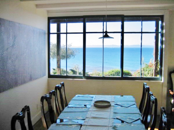 Fabulous Ocean and Island Views are enjoyed from this charming 4 bed/3 bath 2-story furnished home on the Mesa. This 100 year old house has been lovingly renovated and restored in keeping with its original charm. An open floor plan makes this home feel spacious and bright with walls of windows in every room allowing for the wonderful ocean views! Upon entering the home you notice vintage hardwood floors throughout, a spacious living room with scenic ocean/ island views, a wood burning fireplace and a separate study room. The gourmet kitchen is updated with granite countertops, stainless steel appliances, designer lighting, white kitchen cabinetry and an eat up bar. There are built-in bookshelves and lovely wood trimmed leaded glass windows. The dining area is off the kitchen and tucked up against floor to ceiling windows for an inviting outside feel. A media room and a full bath are adjacent to the dining area. The second floor has 4 bedrooms and 2 baths. Three of the bedrooms have spectacular ocean/island views. There are French doors that open out to capture the ocean views and the lush tropical trees and colorful vegetation. The laundry room is located upstairs. There is an entertainment patio to enjoy the whale watching, dolphins playing, sail boats competing and beautiful sunsets. There is a new 2 car garage and some storage available. This home is on a bluff, approximately 135 feet above the ocean and close to the infamous Mesa steps leading down to the beach. You can walk to shops, cafes and parks. Available now and asking for a 6 month lease or longer. .